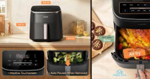 - Cosori’s unique 5-fan speed system and precise 90°– 450°F temperature control deliver evenly cooked dishes with perfect texture in every bite